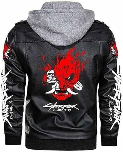 Meshnew Embrace C-Y-B-E-R-P-U-N-K in the Halloween Samurai Black Hooded Gaming real leather Jacket