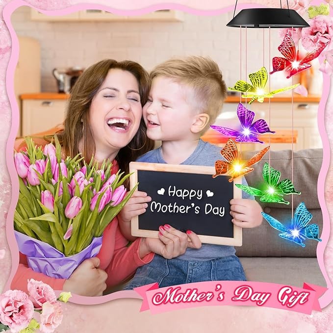Mom Gifts for Mothers Day Grandma Gift, Winzwon Butterfly Solar Wind Chimes for Outside Solar Lights Outdoor Decor Hanging Mobile for Garden Patio Yard Porch Decoraion Birthday Gifts for Women