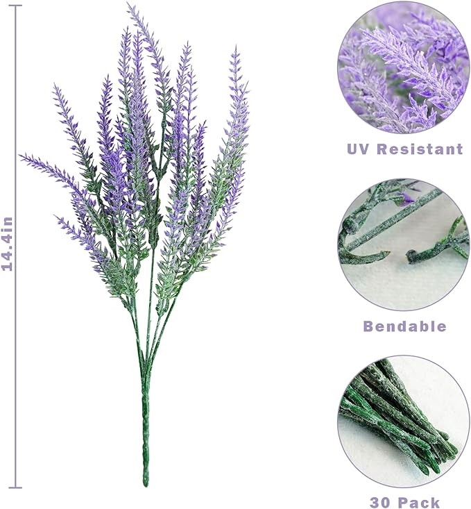 ? Lavender Flowers Artificial : Each order includes a 30 bundle of fake lavender plants, each about 14.5in tall. Ample lavender to create a stunning display that meet your various decoration needs