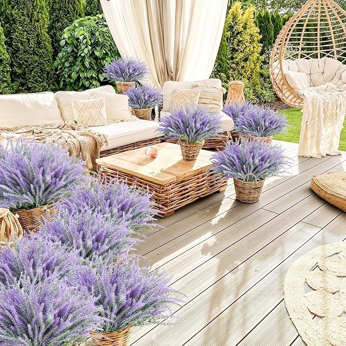 ? Wide Range of Applications: : These outdoor artificial plants are perfect for front porches, walkways, gardens, kitchens, offices, windowsills, living rooms, dining tables, bedrooms, patios, garden fences and planters. Bright up your home with overflowing purple!