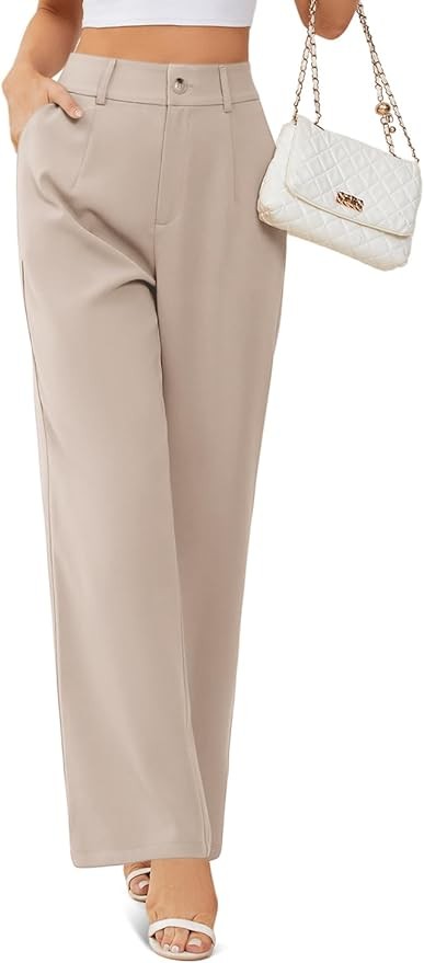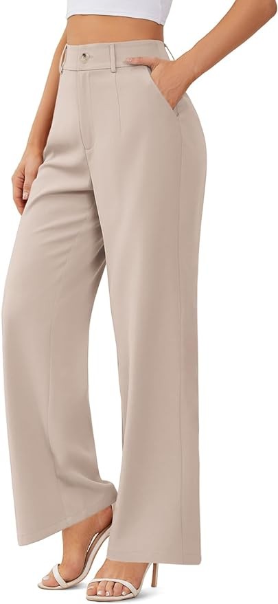 onlypuff Womens Wide Leg Pants High Waisted Slacks Straight Long Work Business Trousers with Pockets
