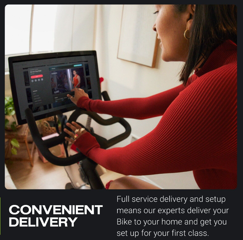Small-space friendly - Peloton Bike has a compact, 4' x 2' footprint, and an adjustable seat, handlebar, and screen, which tilts to accommodate different heights. This stationary bike fits comfortably in your home whether you're low on square footage or working around furniture.