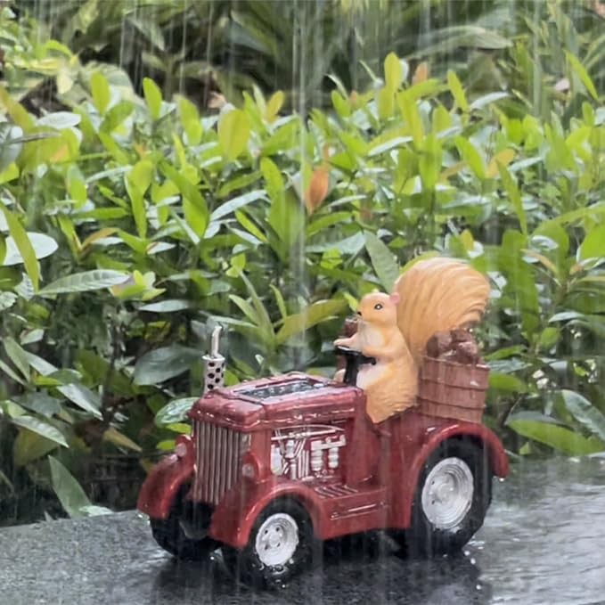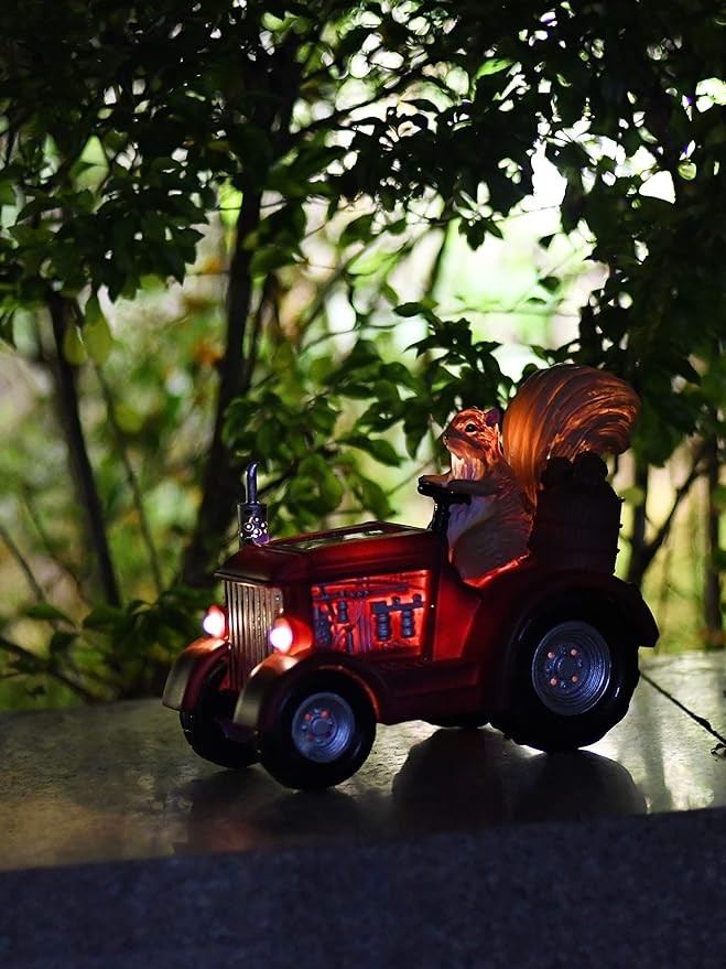 Lifelike Figure of Driver: Lifelike statues of squirrel driver with two hands on the steering wheel, eyes staring ahead, just like a touch of high-speed driving -- your guests will begin to think these bushy tailed creatures are on their way to a harvest festival convention.