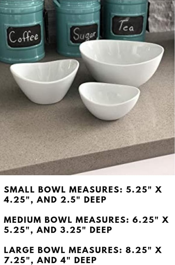 • ✅ EASY TO STORE and save space when not in use These oval shaped bowls can be easily nested and stored. Listed below are 3 bowls, 5.25, 6.25, and 8.25. These durable ceramic bowls are easy to clean and can be used in dishwashers, microwaves and freezers.