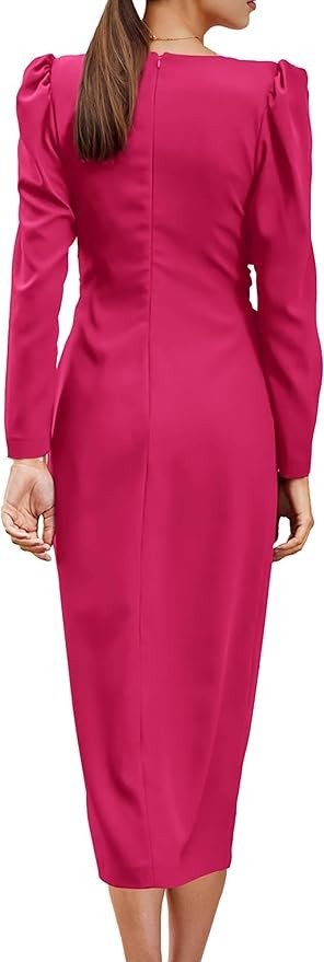 EYE-CATCHING DESIGNS: Long Sleeve Dress For Women Fall/ Puffy Sleeve Dress/ V Neck Dress For Women/ Maxi Dress With Slit/ Long Dress For Women Casual/ Elegant Dresses For Evening Party/ Twist Front Dress/ Womens Fall Fashion 2024/ Ruched Dress