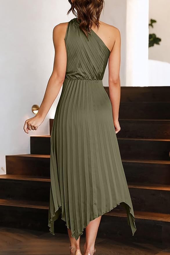 A VARIETY OF CHOICE: Army Green One Shoulder Dresses For Women/ Bean Paste Pink Summer Outfits For Women/ Black Long Formal Dress/ Brown Sleeveless Dress For Women Summer/ Dark Green Wedding Guest Dresses/ Lake Blue Ruched Dress For Women/ Light Blue Womens Satin Dress/ Wine Red Valentines Day Dress