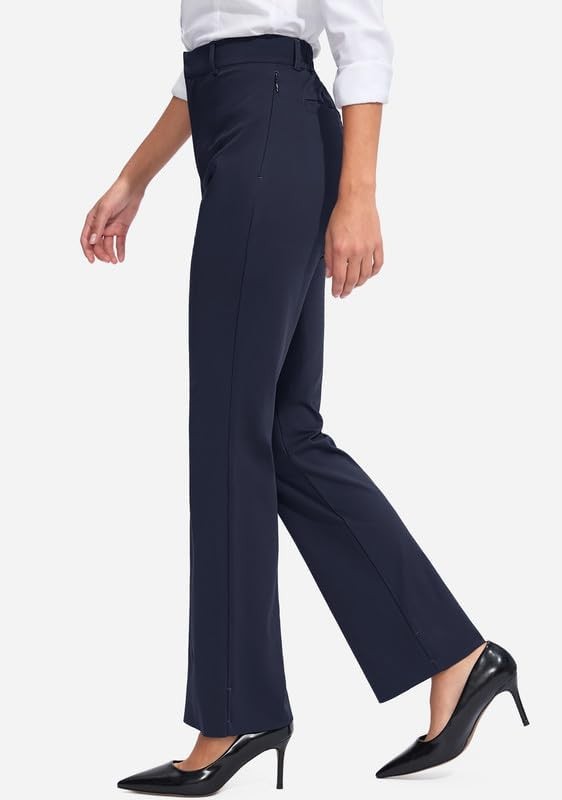 Rammus Womens Straight Leg Casual Pants with Zipper Pockets Stretch Dress Work Pants for Women Business Office Slacks