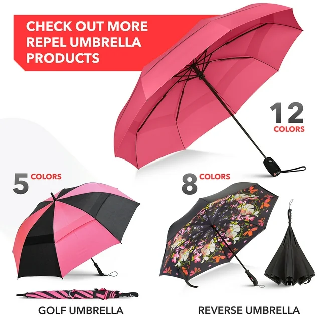 You never know what Mother Nature has in store — always be prepared with the Repel Travel Umbrella. Built to withstand the elements, the black umbrella features 9 reinforced ribs that are sturdy, durable, and tough; keeping you protected through the heaviest of rain, snow, and wind. Color Black & White. Unlike other umbrellas that turn inside out and break during high winds, our automatic umbrella is designed with a Teflon coated double vented canopy that gives, not breaking or inverting. Compact and lightweight measuring 11.5 inches long and weighing less than a pound, this cute umbrella is suitable for adults and kids alike. At the push of a button,the small umbrella opens and closes automatically, perfect for one-handed operation. Plus, the rubberized non-slip handle and wrist strap make it even easier to carry. Perfectly fits inside backpacks, briefcases, purses, luggage, and car glove compartments.