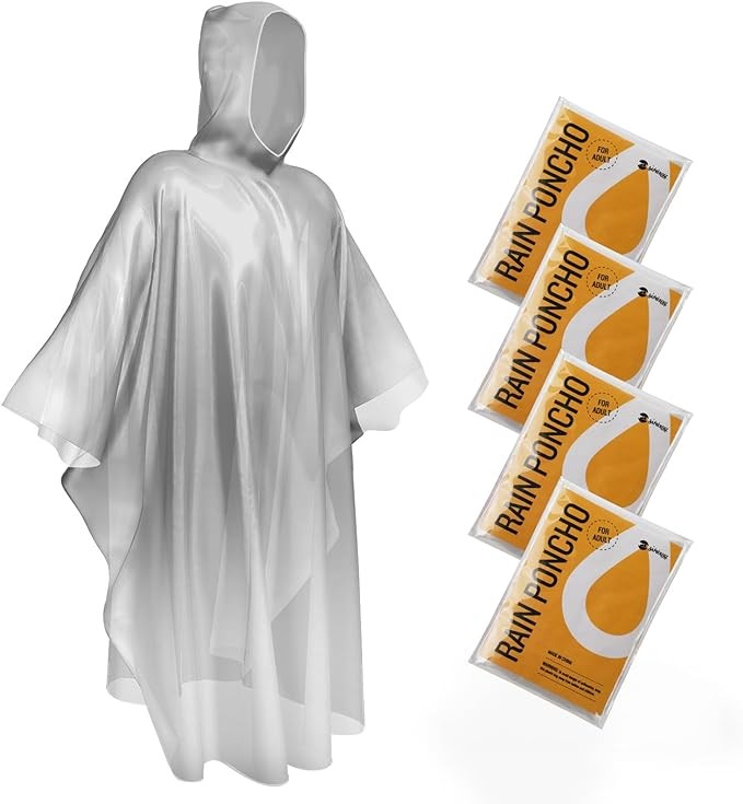 • [Design]: Hooded rain cape / 4 pack / Compact package / Each rain poncho packed individually