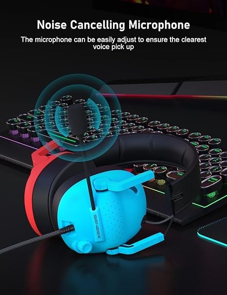 • [NOISE CANCELLING ANTI-STATIC MICROPHONE]: The bendable microphone arm can be fixed to any position to ensure the clearest voice pick-up, and filters out surrounding environmental noise and eliminates static. The Senzer SG500 noise cancelling headset with microphone provides real-time in game chat without delay, making it easier to communicate with team-mates, friends and family without unnecessary interruptions.