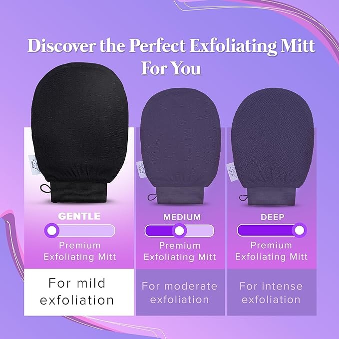 • Achieve Softer, Healthier, More Radiant Skin – The Gentle variant of our Premium Exfoliating Mitt helps unclog your pores, visibly remove dead skin, and improve circulation to reveal a rejuvenated complexion. This body buffer also serves as a self tan remover that preps your skin for even application or removal of your sunless tanning solution.