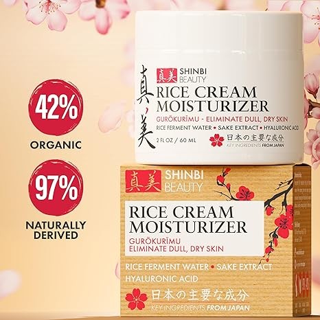 Shinbi Beauty Japanese Skincare Moisturizer for Face - Rice Cream With Rice Ferment + Sake Extract - J Beauty Natural Asian Skincare Products 2oz