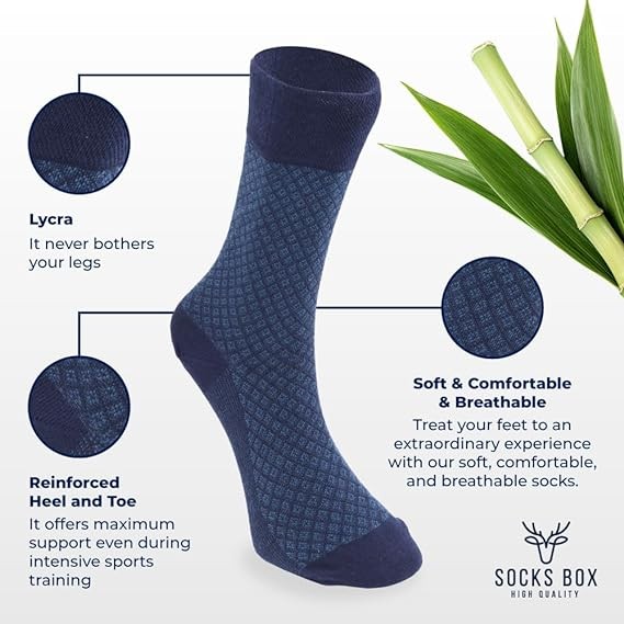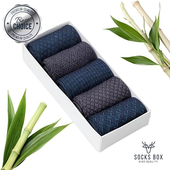 SOCKS BOX Mens Dress Socks With Gift Box Patterned Premium Quality Bamboo Rayon Socks (5/10 Pairs)