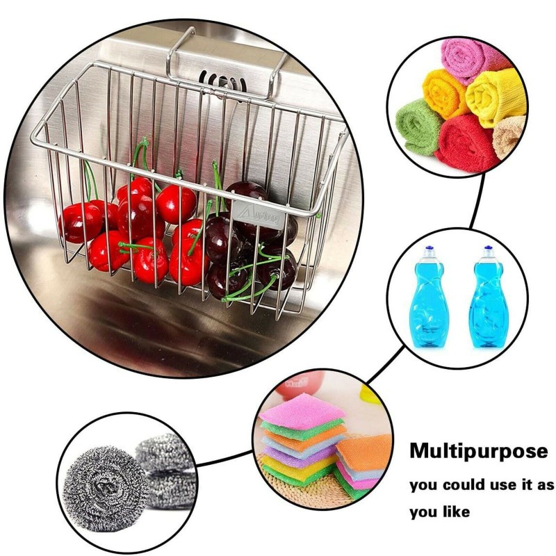 Stainless Steel Kitchen Sink Sponge Holder Caddy Brush Drainer Rack Basket '