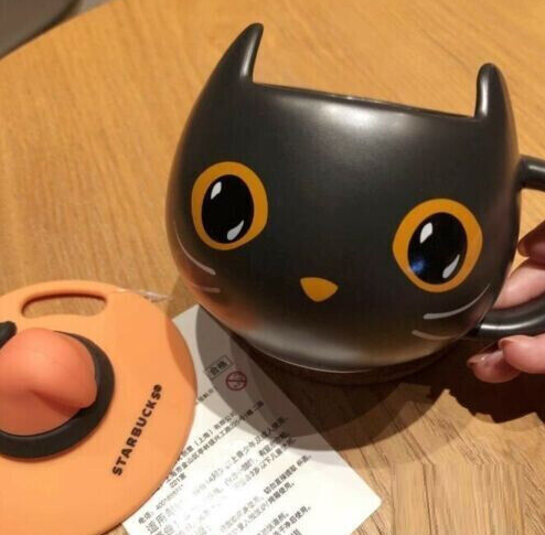 2021 Starbucks Black Cat Cup With Witch Cap Lid&Spoon Water Mug Halloween Gifts