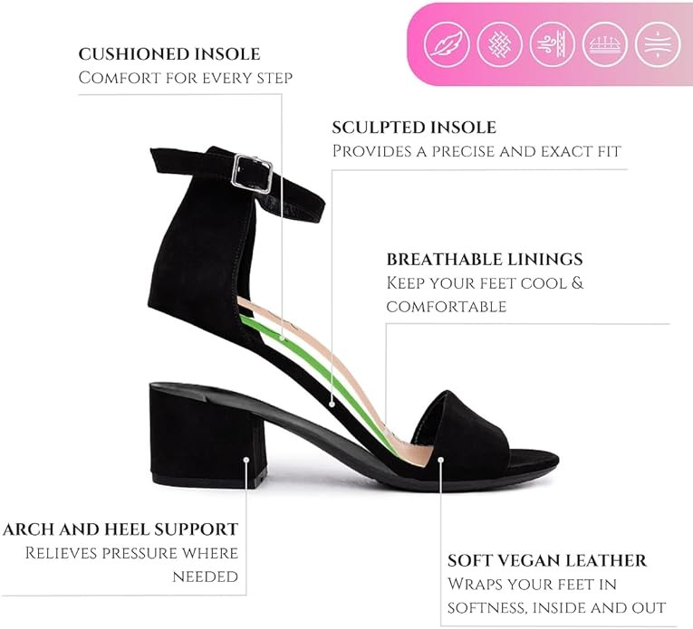 • Chunky Heels: These high heels feature a timeless, sturdy heel design, ensuring all-day comfort with their latex insole and just-right heel height. Enjoy personalized ankle support with the adjustable straps, elevating both style and comfort.