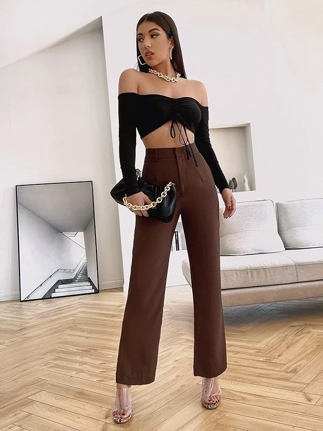 SweatyRocks Women's Elegant High Waist Solid Long Pants Office Trousers