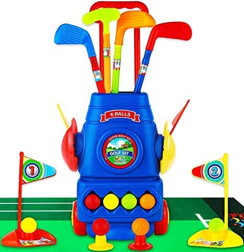 Toddler Golf Set - Kids Golf Clubs with 6 Balls, 4 Golf Sticks, 2 Practice Holes