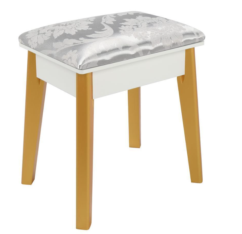 This is a very fashion, modern and simple dressing table. Adopting sturdy MDF and cylindrical solid wood leg support, the dressing table is full of modern sense. Large glass round mirror on the tabletop can show your beauty. Two small drawers and storage cases on the desktop can store your jewelry and cosmetics. Two drawers on the table with a panel can make a good classification for your cosmetics. When you are not using it, you can also remove it as a desk or other table. This dressing table can be placed in the living room, bedroom, or anywhere you want, which can provide the most beautiful furniture decoration for your home.