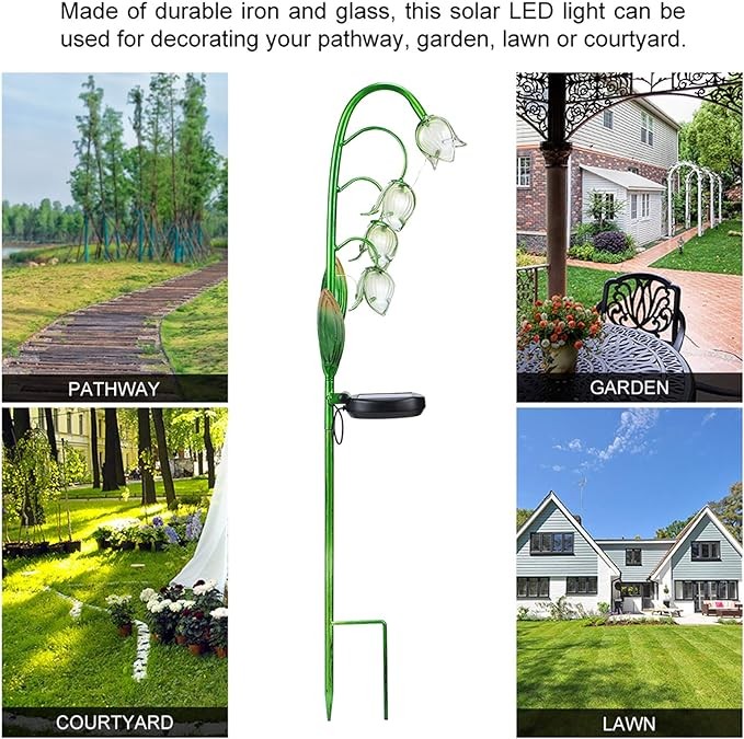 • Unique Design & Premium Quality: The outdoor flower light is composed of glass flower,iron pole,led lamp and plastic solar panel,improving quality and appearance.The pretty rose flower stake makes the garden more vivid and bright, whether it is day or night can be well decorated garden.