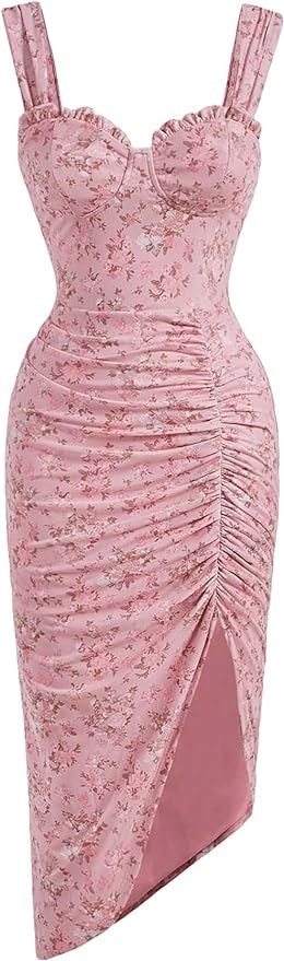 Verdusa Women's Ruched Split Sweetheart Neck Sleeveless Floral Print Long Bodycon Dress