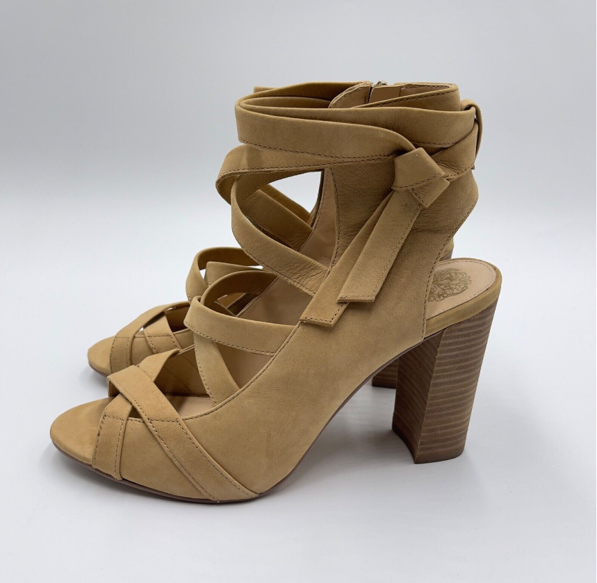 Vince Camuto Sammson Sandals Womens Size 10 Tan Strappy Leather Zip
