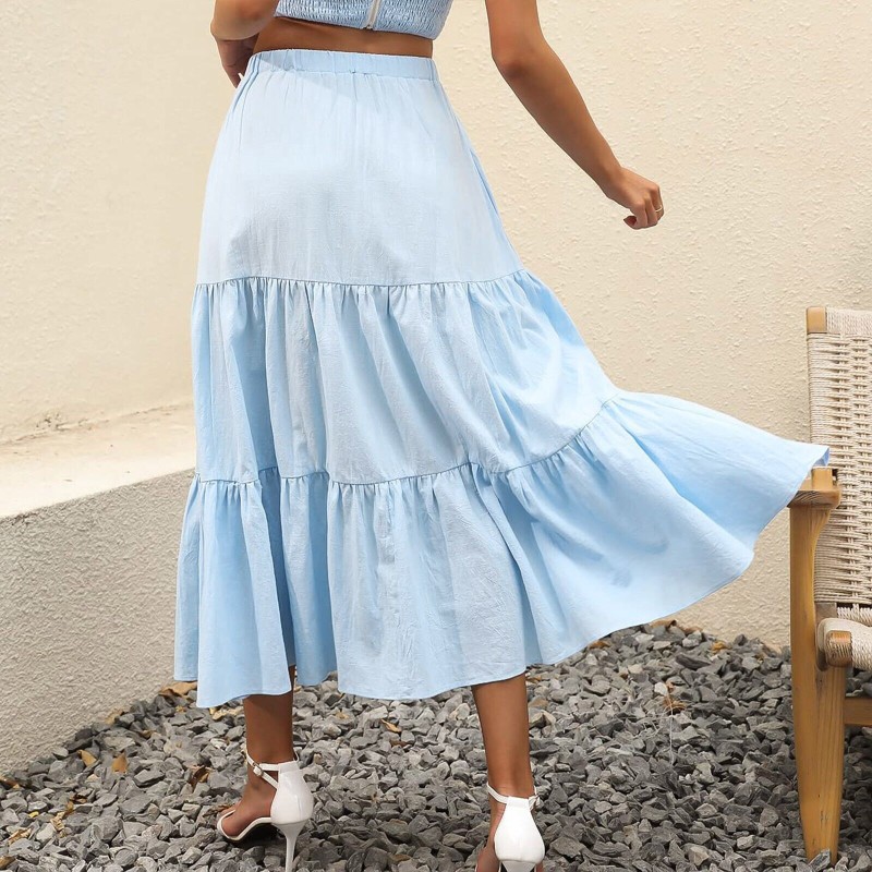 Women Boho Elastic Waist Pleated A-Line Flowy Swing Tiered Long Skirt Dress