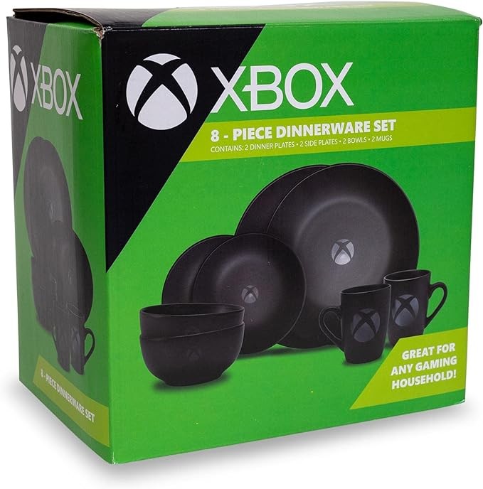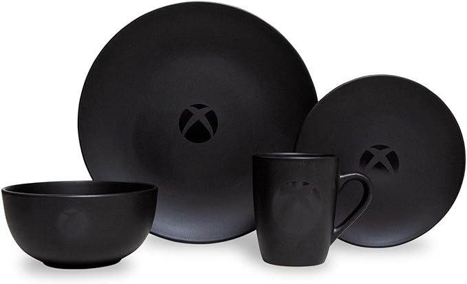 • HIGH SCORES FOR STYLE: Get into gaming mode with this sleek dish set that will keep you in the zone. The matte-black finish features the classic Xbox logo adorning each piece for a look that's certified fresh.